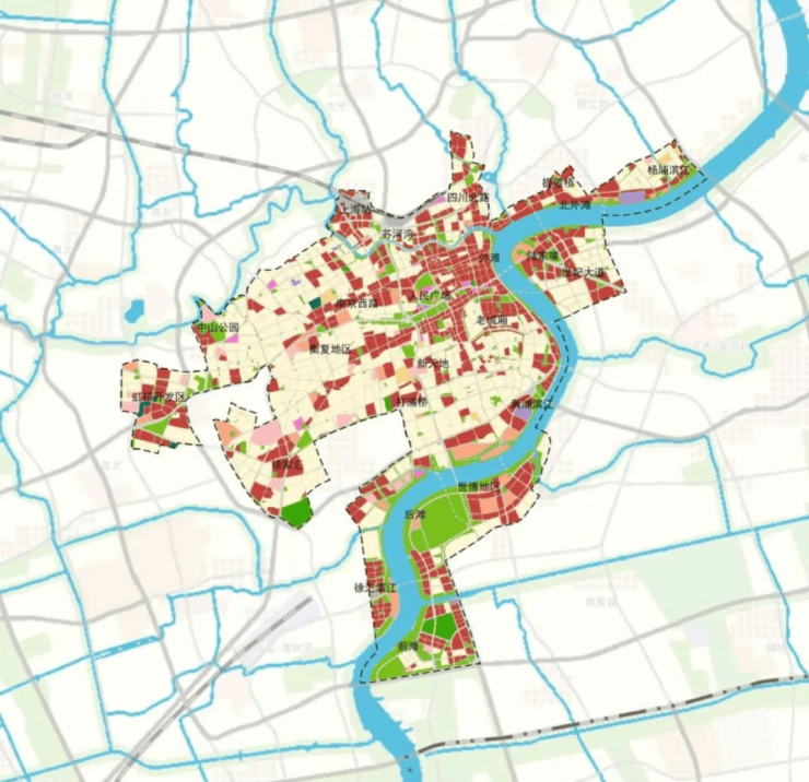 上海中央活动区的规划范围集中在世博-前滩-徐汇滨江地区、徐家汇、衡山路-复兴路地区、中山公园、虹桥开发区、苏河湾、北外滩、杨浦滨江(内环以内)等地区,总面积约75平方公里,仅占全市面积的1.18%,却贡献25%的GDP。