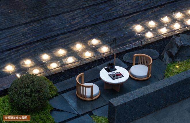 项目特意保留芙蓉书院重要习俗传承——洗砚池(也称“墨池”),以黑灰色为基调,特选臻植+奢石为底,打造墨池质感。