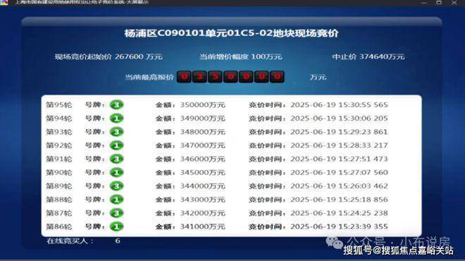 6月19日,保利发展经过95轮竞价摘得杨浦东外滩地块,成交总价350000万元,楼板价95530元/㎡,溢价率30.79%.