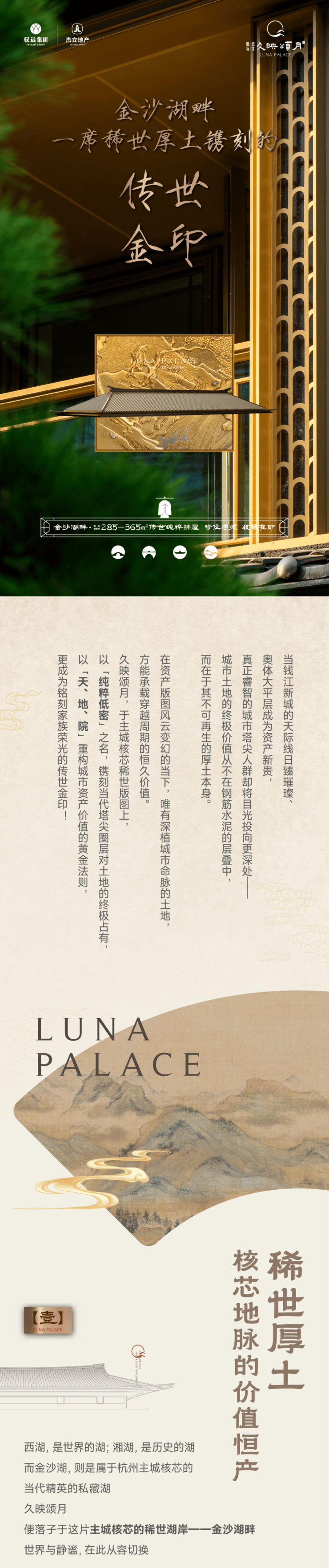 久映颂月府,今年买今年住,以千万级宋韵四层排屋,收官金沙湖低密藏品,敬献杭州世家大族。
