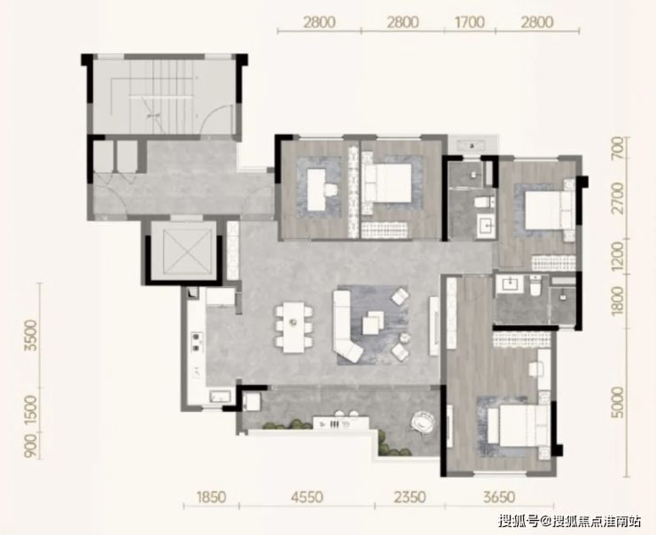 通俗地说,塔楼以电梯、楼梯为布局核心,上到楼层之后,向四面走可以直接进入户内;