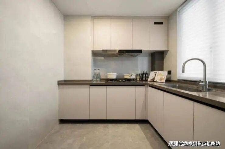 前排一线湖景楼幢,约12.4米超大面宽、四开间朝南。实体样板房的餐厅在做了双排餐边柜后,座位依然阔绰。厨房也非常自信的放入了双开门大冰箱,对喜欢屯各种生鲜食品、饮料的年轻人来说真是心头好。