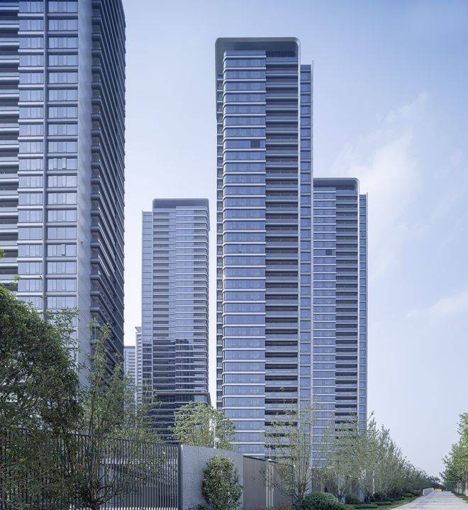 杭州壹号院以反重力立面美学,框下了城市江岸盛景,也成为杭州城市封面的独特一隅。宽域玻璃面、高品质铝板与精致的石材、金属线条、玻璃栏板型材线脚相融,以弧线、充满科技、未来都市感的建筑语言,诉说奥体中心时代之“潮”。