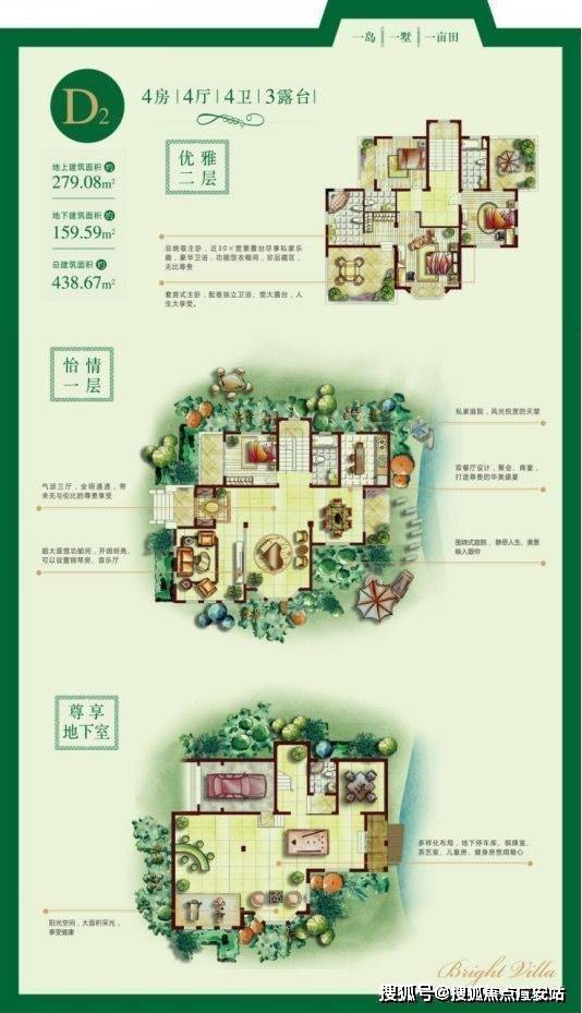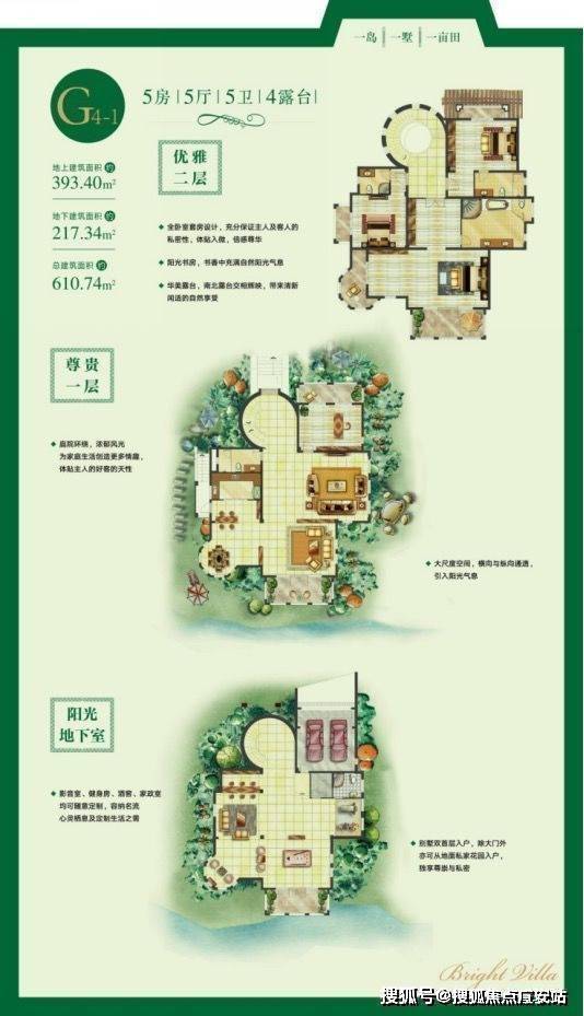 户型设计:具有独特双首层设计,5.1 米大面宽客厅,全明通透的地下空间,空间布局合理,采光通风良好