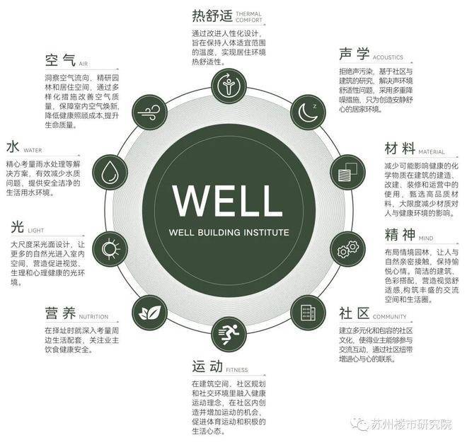 通过国际金级WELL认证 ,将空气、水、营养、光、运动、热舒适、声环境、材料、精神、社区等体系作为认证标准,倡导更健康的生活方式。