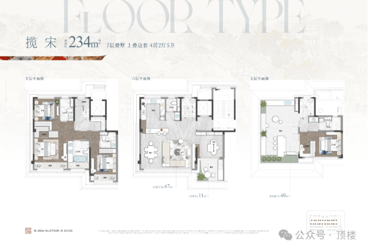 合院:围合式院落,中式 / 法式,私密性极强,高端产品。