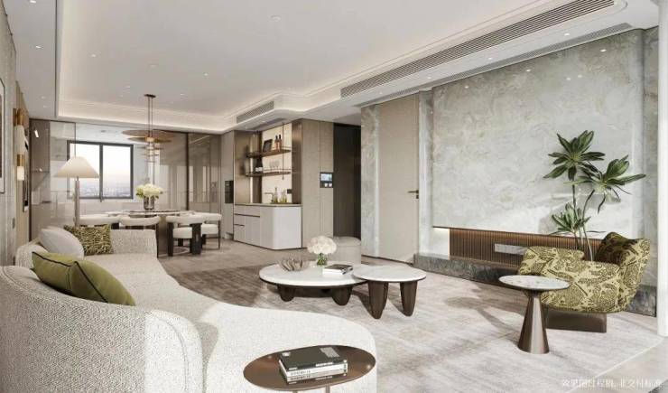 同时,高层层高约3.1米,在吊顶、地暖、中央空调等设备之外,空间感依然阔绰。