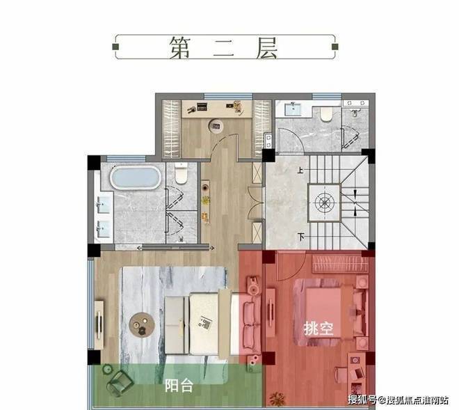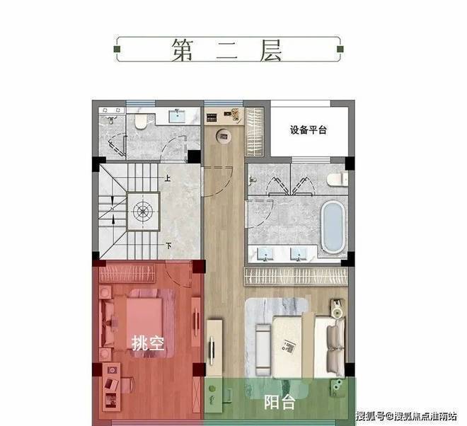 二层,可实现多样化布局。可改约6.4米挑高+南向阳台,根据家庭需要自由定制,可以是2房布局,也可以是家庭第二客厅,工作室、收藏间,灵活性较强。