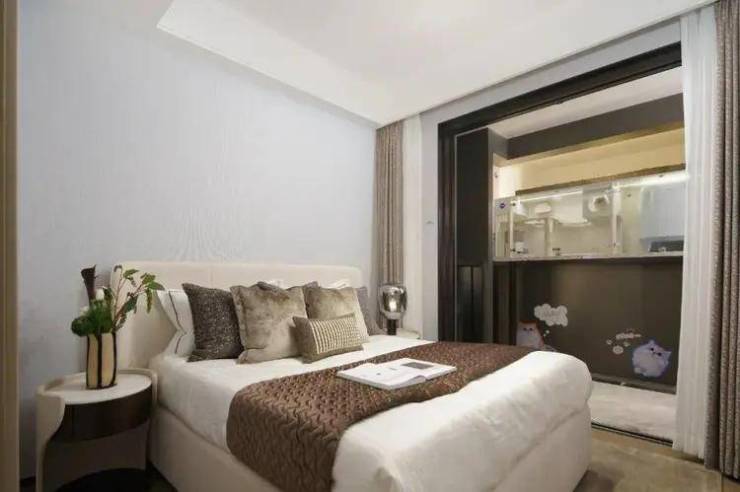 上海杨浦中建壹品·外滩源著售楼处电话:400-9939-964北侧次卧带飘窗,南侧次卧连接阳台,尺度感拿捏的非常好,完全可以放下1.8m的床。