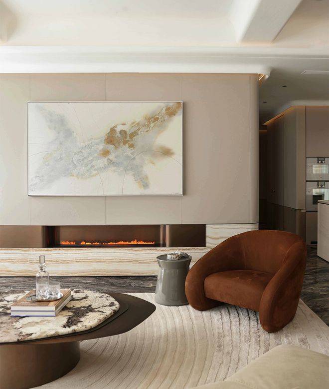 以空间收纳欢悦的时光,为生活赋予艺术的慰藉。约270°环幕社交三联厅,相连开合厅,通过空间的布局和光影的配合,场域与场域的贯通,营造为充满艺趣的社交场景,混合交叉又充满个性,开合之间,私密会客、开放式交流,家庭成员的个性需求,都一一得到照顾。