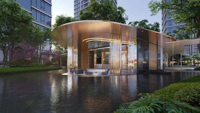 凤咏朝阳的北入口都很讲究,就像下一秒要拥人入怀的臂展——凤咏朝阳用浓烈的仪式感打造了两大主入口,用的都是星级酒店的做法,让我们不自觉就会调整入户前的情绪。重头戏更在大门之内,他们把江南四大名园的造园手法,运用到了凤咏朝阳这座「游园式大平层」的园区中——