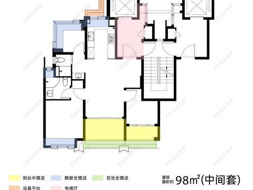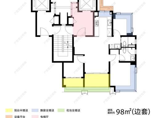 小高层 98㎡三房两厅两卫(中间套 / 边套):三开间朝南、LDKB 一体化、双阳台 + 270° 飘窗、主卧套房设计,总价 698 万起,刚需刚改首选。