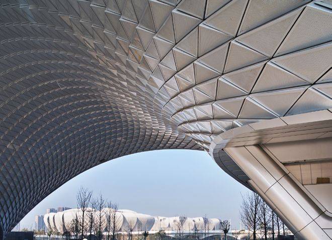 为了拟合流线型的建筑形态