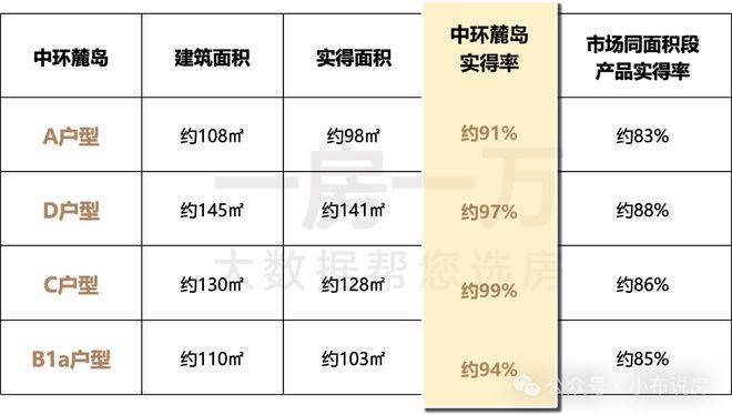 而中环麓岛通过精准的户型优化与空间拓展设计,实现了实得率的全面突破: