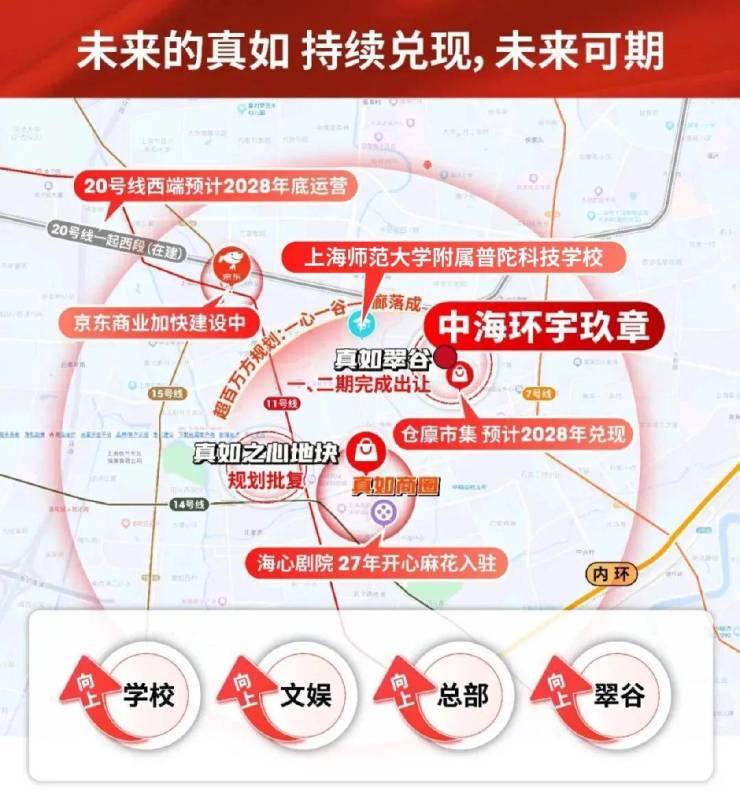 真如“一心一谷一廊”加速成型,翠谷出让完成正在开发,真如之心即将出让,上海西站京东商业同步推进、20号线西端有望最快2028年底运营...内环旁土地普遍开发殆尽,真如爆发力堪称稀缺。