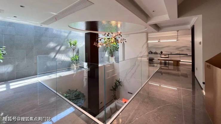 让众多参观者最是眼前一亮的,便是金翊·金云院的双层挑空地下。电梯自四楼而下,在-1层打开的一瞬间,采光井的光线打在墙面上,发出耀眼的丁达尔效应。