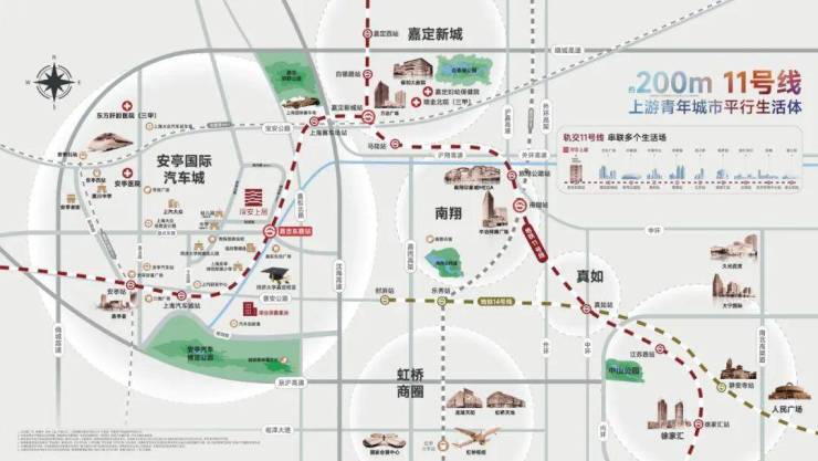通过11号线,项目2站即可直达嘉定新城,4站南翔印象城,11站真如副中心、17站徐家汇!