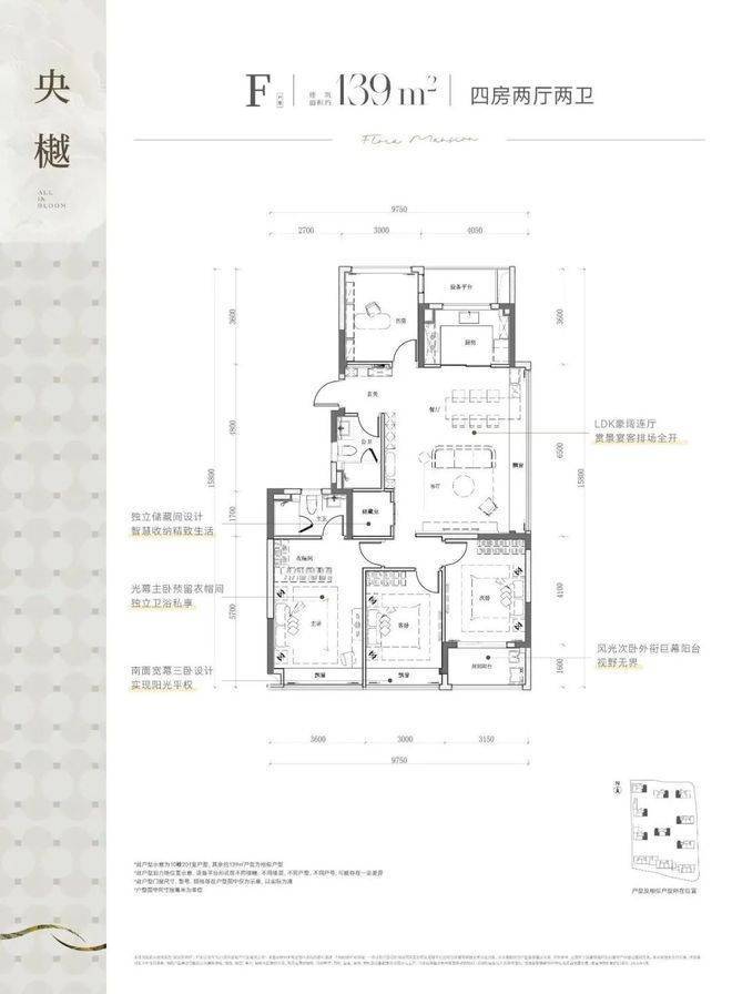 南面房间飘窗/阳台设计,充分延伸空间尺度,超宽超大横厅带独立玄关和独立储藏室空间,兼顾大空间尺度、舒适体感和全周期灵动布局,实现了居住价值的真正回归。