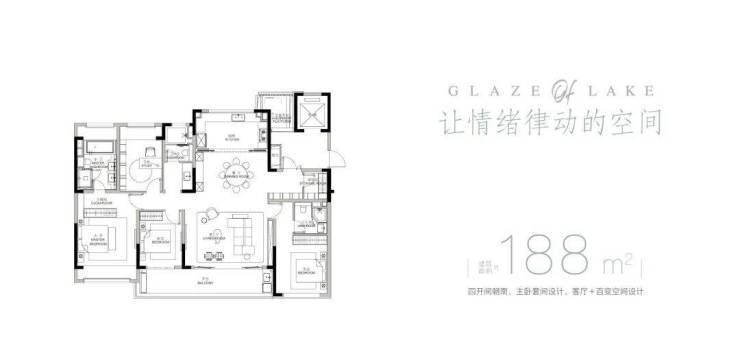 洋房:建面188–248㎡,8–10层,四开间朝南,270°环幕湖景阳台