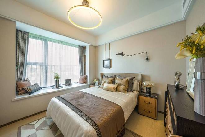 另外一方面,这个巨大的阳台以及全卧室带飘窗的设计,能更好的延展室内的视野,也能变相的增加收纳空间。