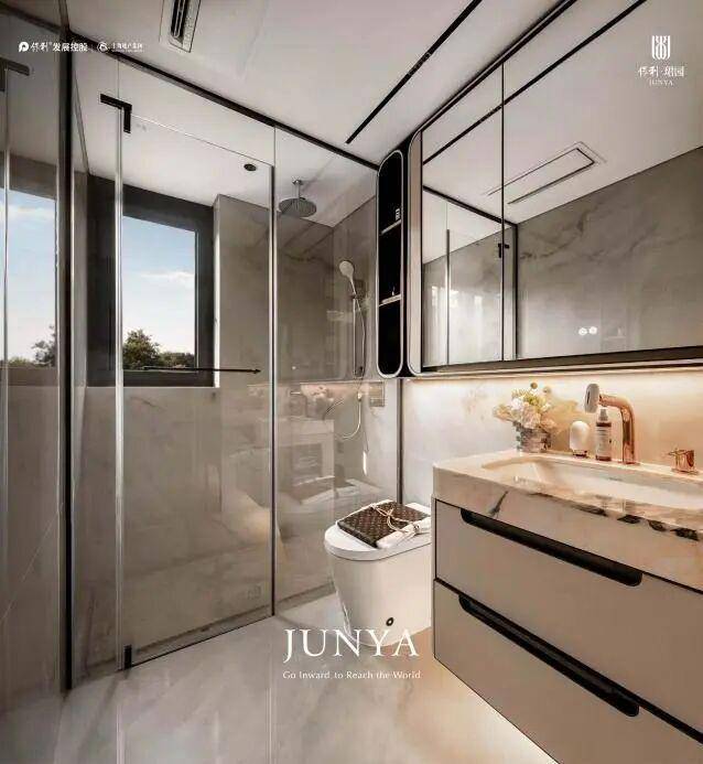 ④她享主义的革新:注重女性居住体验,在上海首创"女神4件套"的基础上再度革新,升级为"女神6件套"!于主卫配置科勒美妆龙头、美妆镜柜、双补光照明、专属美妆冰箱基础上升级奥普美容舱浴霸及进口胭粉奢石台面,构成周全的她享主义系统。