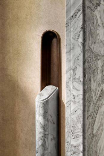 ②个性定制的革新:深入细节的专属感营造,提供包括豪宅金属线(挂画系统)、门牌、门把手及背景墙岩板等在内的深度定制选项,在去年保利首创可定制引领市场潮流之后,再次迭新,让家成为独特的个人印记。