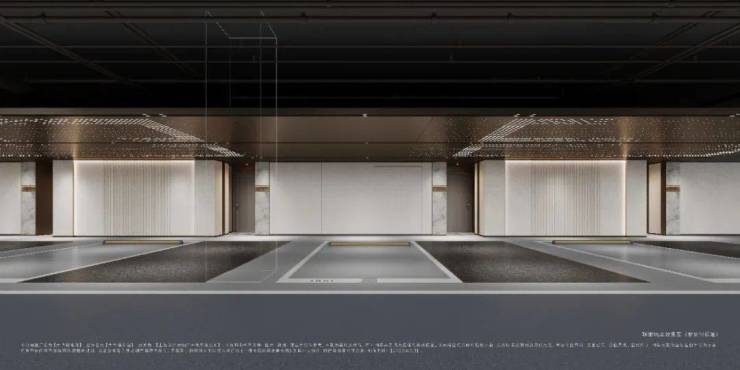 项目地下精装车库非常奢雅,汽车坡道采用氛围照明,缓解光环境变化,搭配星空顶造型彰显独特。