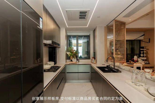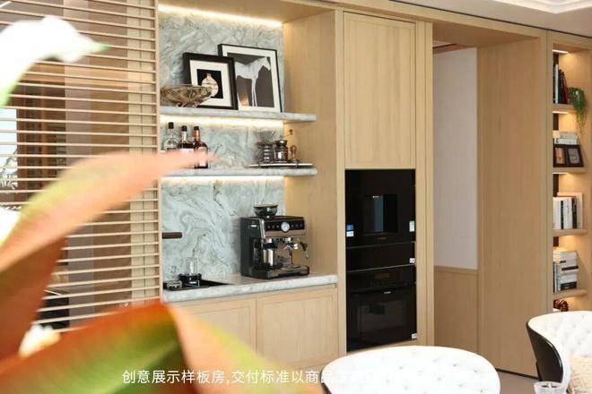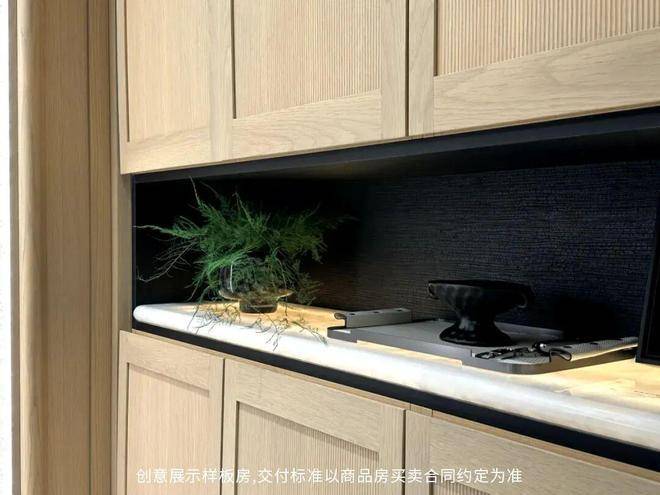 •电动调味舱(建面约143㎡户型):隐藏调味品易拿取,保持台面整洁;