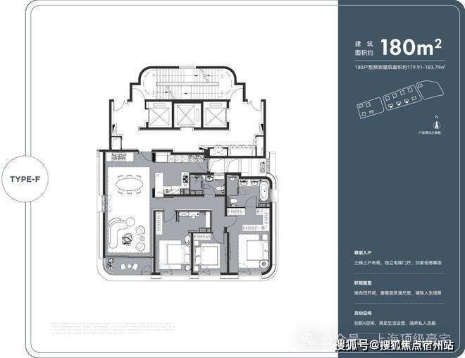 * **纯粹的产品定位与设计**:起步约180平方米的户型设定,确保了客群圈层的纯粹性。户型设计强调通透与景观视野,如240平方米户型的横厅面宽达约8.6米。