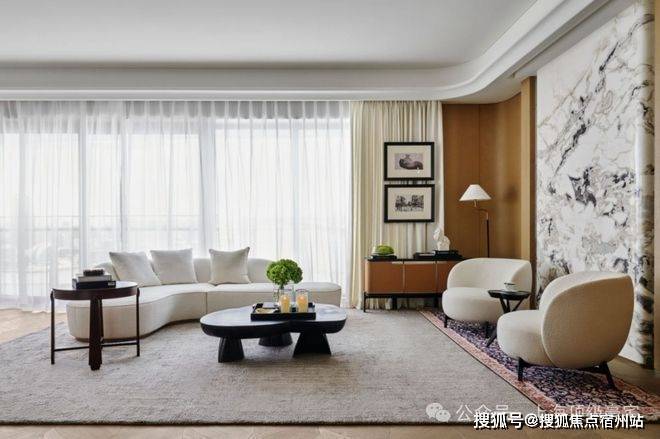 The living room space adopts a large number of expensive curved surface designs, bringing a more elegant aesthetic value
