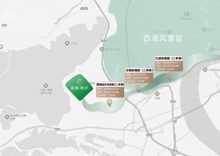 西湖岸边几乎不可能再有宅地。静卧西湖群山的精致龙坞,住宅地块少之又少,本案龙坞山水墅境,主城难得一见。