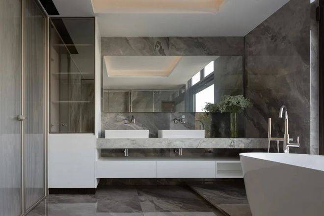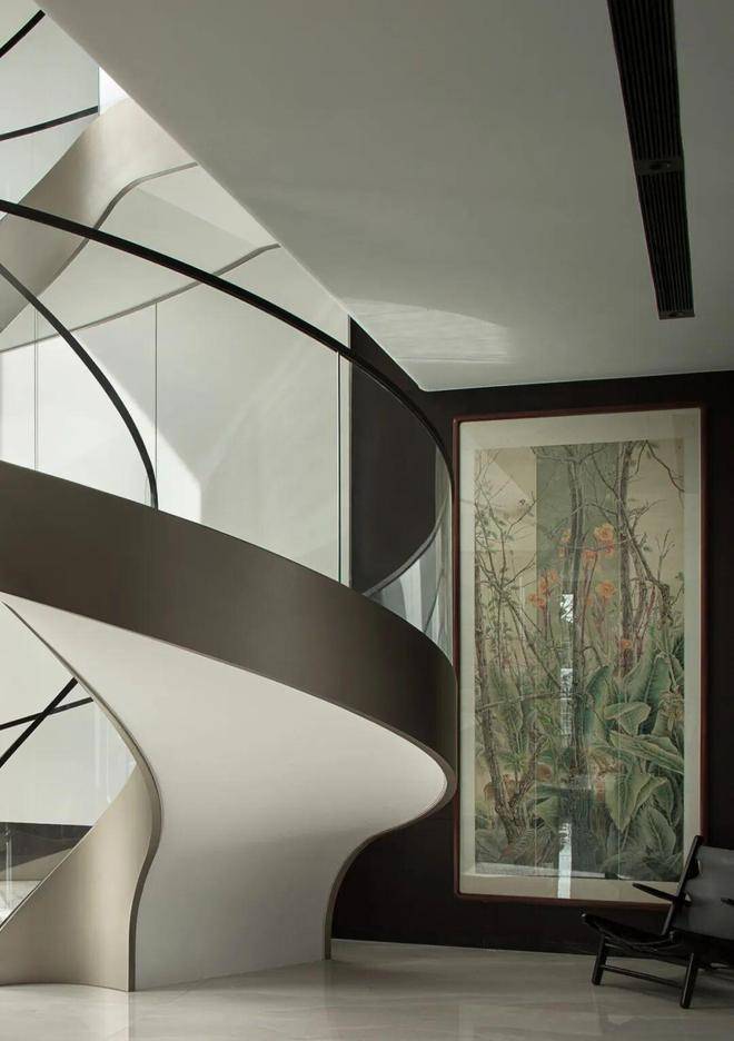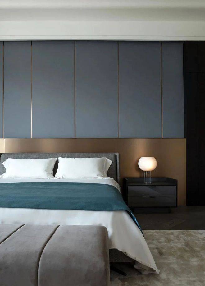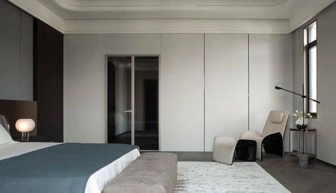 “与一层公共区域优雅的白不同,卧室空间的白我们又加了一个色调,这样会显沉稳而内敛。”设计师说道。