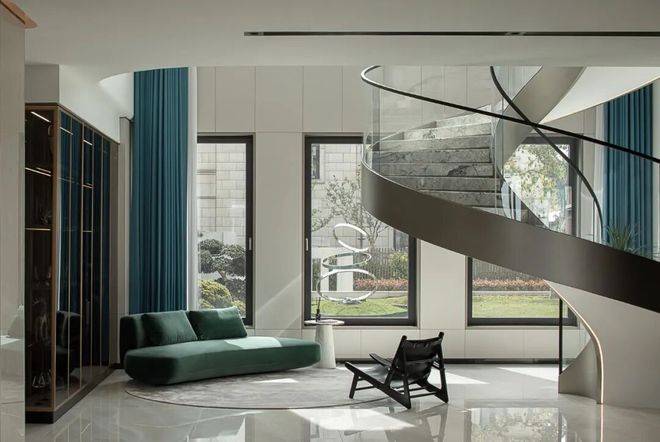 6.6米高的挑空客厅,配以6扇大窗,暖阳的降临,开启温暖却充满幸福的一天。坐在沙发一角晒太阳,或是看孩子在旁边,嬉戏玩耍,软绵的地毯与欢声笑语,时针过得悠悠慢慢。