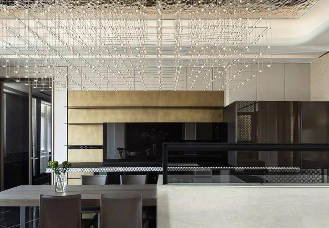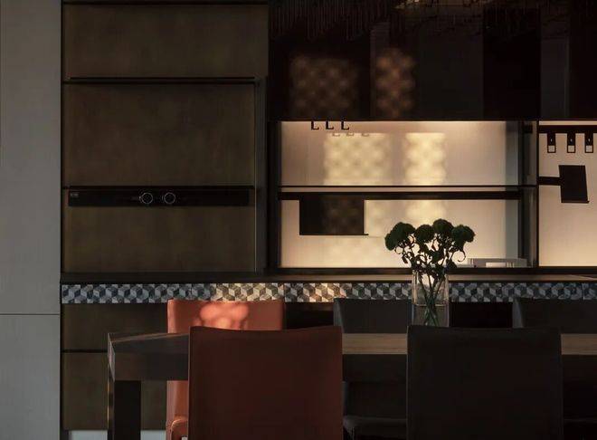 暖色的氛围灯起到了视觉升温的效果,光影叠满整个空间,感受如琥珀般晶莹的夜。