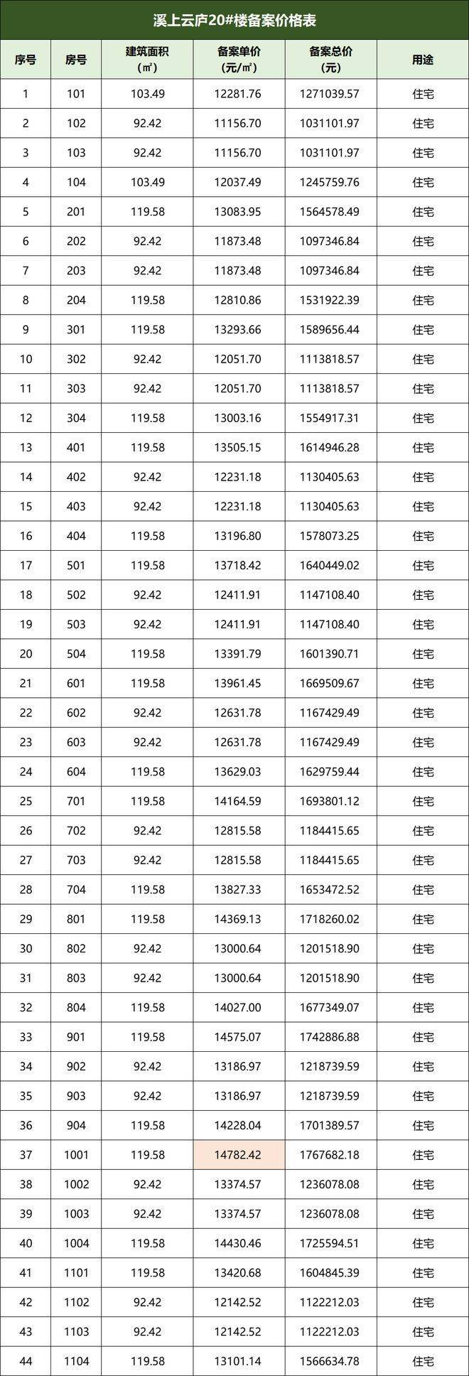 住宅备案价: