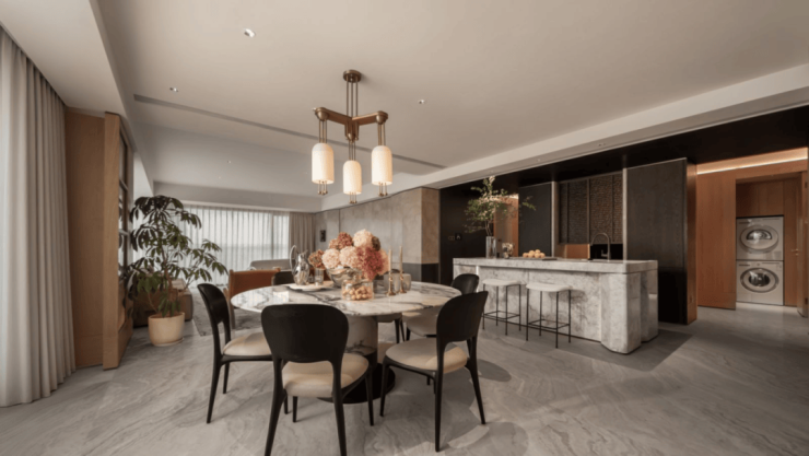 转身回到中西双厨,独立岛台静候其间:早上是手冲咖啡的角落,傍晚变身家族宴席的舞台。从一人食的从容,到三代同堂的烟火气,切换只在转身之间。