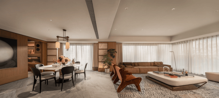 走进外滩瑞府建面约240平米传世平层的室内,首先扑面而来的是一种豁然开朗的通透感。