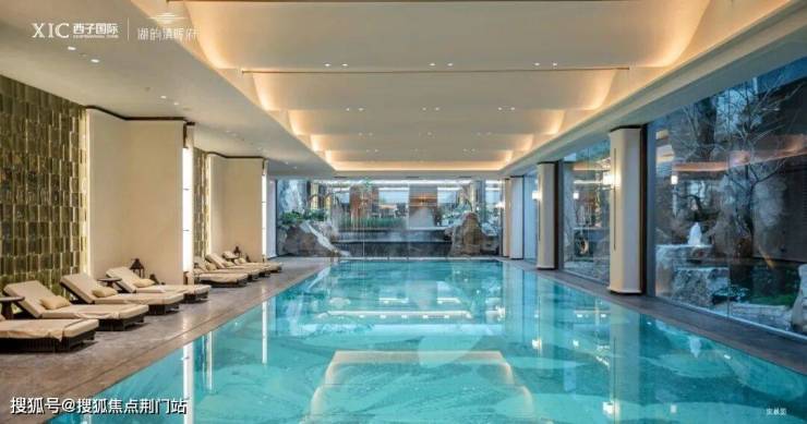 将视野转移到飞流直下的叠石飞瀑之下,便是那约1200㎡的下沉式会所,私宴厅、会客厅、健身房、瑜伽室、恒温泳池……各种功能空间都已经实景呈现,为钱塘塔尖,高定一座东方美学会所。