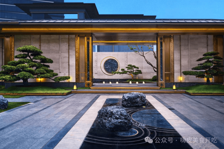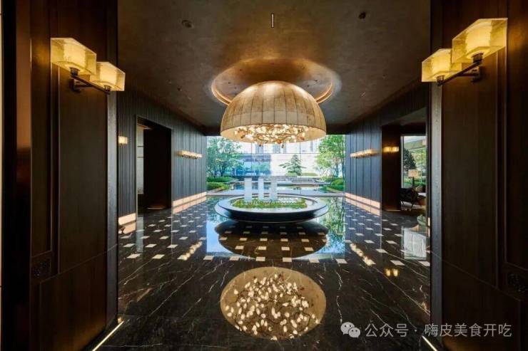 Guiyue Guantang draws on the traditional Oriental symmetrical aesthetics. The two sides of the lobby are designed with Zen-inspired water systems, symbolizing prosperity through flowing water.
