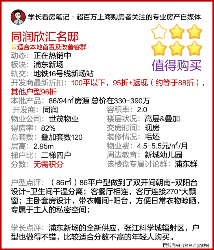 由此可见,在一个地段、产业、配套均好性双双在线的前提下,一个300万级的产品,能拥有如此精致的立面、精心设计构思的景观,世茂的物业以及实用、舒适的户型,「同润欣汇名邸」可以说已经赢在了起跑线上,而且这次机会真的难得!