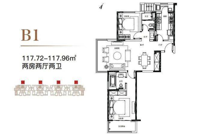117m²双套房设计,每位家庭成员都有私享空间;