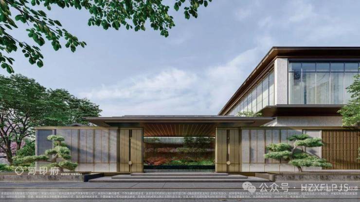 项目以现代审美和设计手法,提取中式美学造极时代的宋式美学,排屋、叠排立面首层采用大面积淳如玉釉的白色石材,二层及以上立面以大量金色勾边营造,古铜深色作为檐口插色低调内敛而富有华贵意蕴建筑。