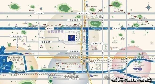逢迎东风,项目所在的青浦白鹤已被纳入上海、江苏、浙江长三角绿色生态一体化发展示范区范围。同时上海市新一轮城市总体规划提出,将以城镇圈作为郊区空间组织和资源配置的基本单元。
