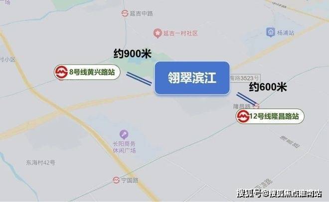 项目南向直线距离12号线隆昌路站约600米,步行可至;北向直线距离8号线黄兴路站约900米,同样步行可至。