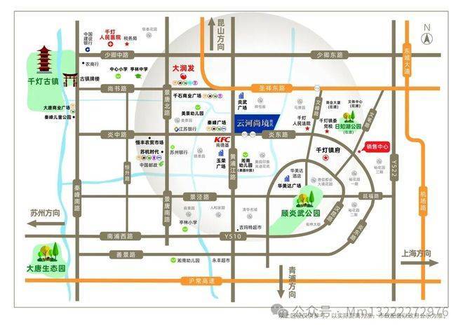 【区位价值】——— 千灯镇,位于江苏省昆山市南部,东邻上海市青浦区,区域面积78.5平方公里,常住人口约22万。现下辖12个社区、16个行政村。