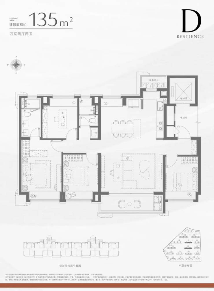 这个户型做到了同面积段罕见的四开间朝南+大宽厅设计,动静分离活动区域起居较为分开互不打扰。