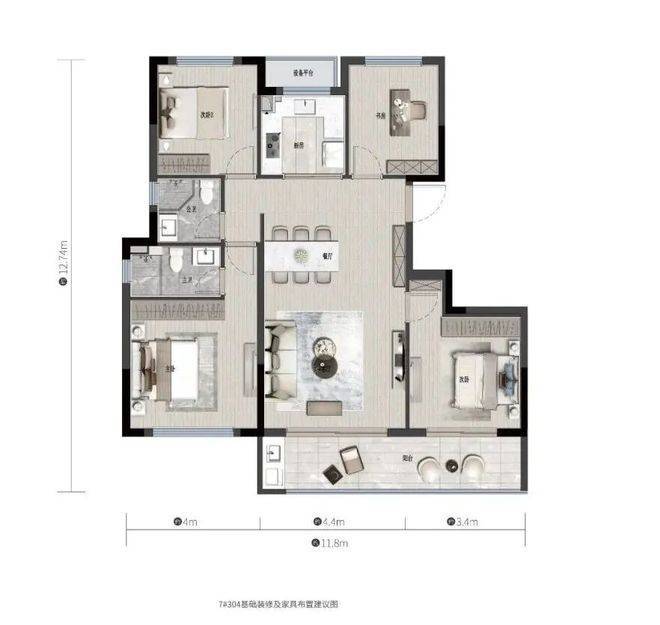 约4米主卧面宽|约7.8米跑道式阳台|约12.7米LDKG厅
