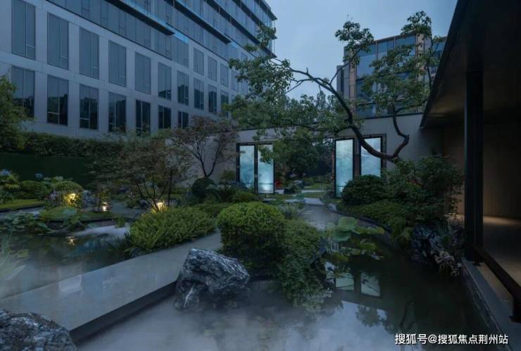 来到水院把自己交还给自然。听风掠过树梢的低语、听雨敲打水面的荷叶、听石清脆有力的回响、莞尔回眸,景墙瀑布流如碎银,驻足听细细物语,心灵在此刻与大自然融为一体。