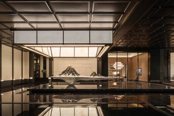 会馆内部规划纳仪、雅集、洗墨、流觞、百贤、濯缨、息心、归吾八大功能空间,并将苏州园林的门、廊、屋檐等经典元素以现代设计语言进行转译与重构,融入硬装设计之中,空间隔而不断、若隐若现、呼吸交融。在软装设计上,结合麒麟符号与苏州在地文化做主体化呈现,并运用不同灯光打造不同空间氛围,处处彰显江南气蕴与人文风雅。