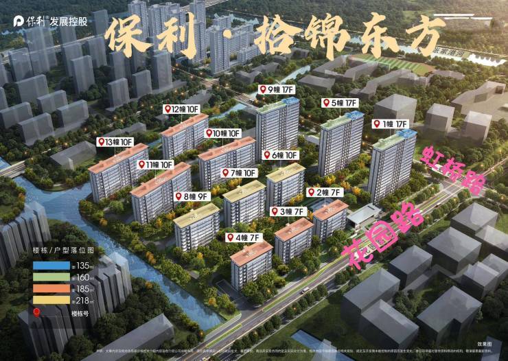 保利拾锦东方雅筑是保利发展控股集团在昆山城西虹桥路花园路交界处打造的高端住宅项目, 总建筑面积约8.2万平方米,由7-10层花园洋房和17层高层住宅组成,容积率仅1.8,绿化率达35%,规划总户数462户,车位配比1:2.16,物业费3.3元/㎡/月。项目预计2026年8月30日交付,目前主力在售户型为160-218㎡墅境低密洋房,均价约31000-34000元/㎡